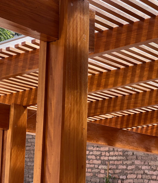 El techo, construido con madera aserrada, presenta una estética limpia y contemporánea que complementa la calidez de los muros. Además, las piedras encontradas en el terreno se reutilizaron para los muros de los andenes y los sobrecimientos, reforzando el enfoque sostenible y respetuoso con el medio ambiente del proyecto.